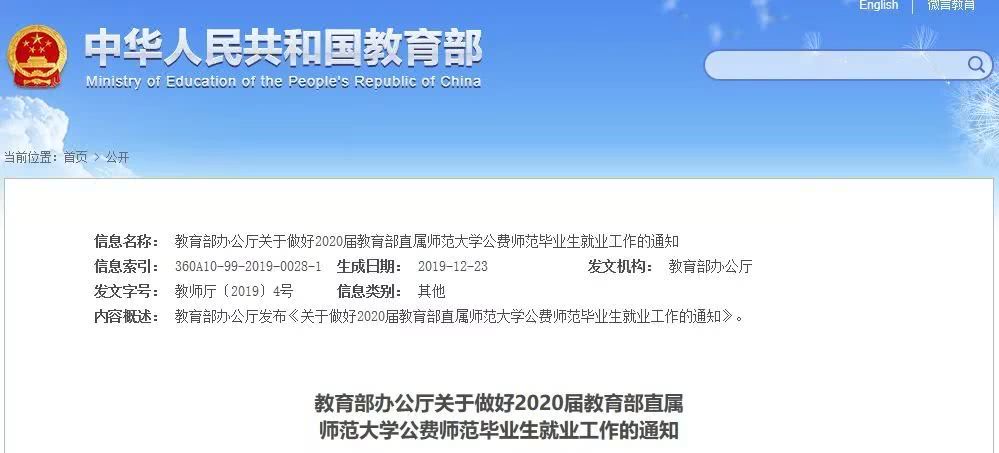 日前,教育部办公厅印发关于做好2020届教育部直属师范大学公费师范毕业生作业作业的告诉,要求确保2020届部下师范大学公费师范毕业生悉数组织到中小学校任教。