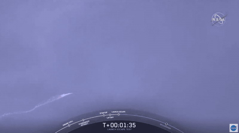 所以,在火箭抵达Max Q也便是最大动压力阶段,类似于试卷中分值最高的难题时,龙号太空舱与火箭进行别离。紧接着,太空舱的四对推动器将本身以2.2倍音速推上了4万米高空,逃离火箭爆破现场约1600米顺畅渡过难关。