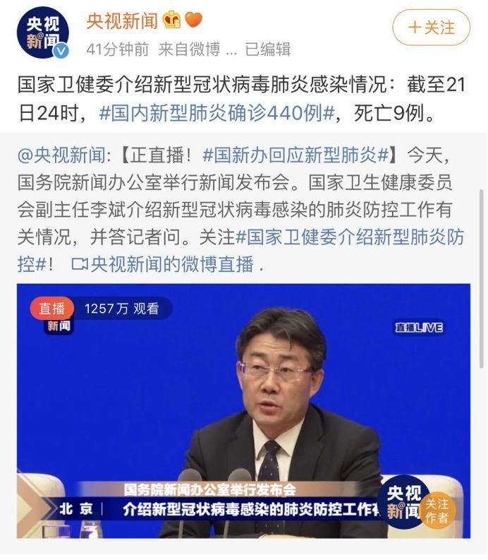 到1月21日24时,全国累计陈述新式冠状病毒感染的肺炎确诊病例440例,累计陈述疑似病例163例,治好25例,逝世9例。