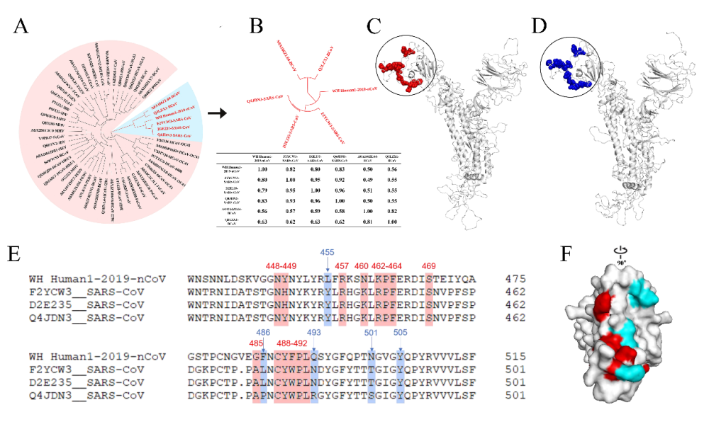 研讨标明,S蛋白是冠状病毒与宿主细胞外表ACE2受体结合、从而介导病毒入宿主细胞的要害外表蛋白,是疫苗抗体研制的重要靶点。根据具有自主知识产权的免疫原性核算东西CE-Blast,研讨小组对一切冠状病毒的S蛋白进行了系统性的结构模仿和免疫原性扫描,核算了新病毒与已知17种冠状病毒亚型之间的免疫原性间隔,发现新病毒S蛋白的免疫原性总体上与SARS更为挨近。进一步核算提醒,2019武汉新冠状病毒与SARS冠状病毒的S抗原在受体接合区域(RBD)上存在潜在穿插反响表位。