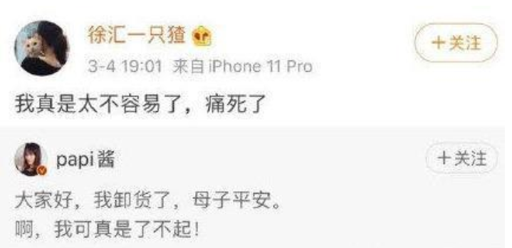papi酱是我十分喜爱的一位博主,每次看她诙谐幽默又尖锐的点评,都觉得十分过瘾。这个风趣的女性怀孕也不消停,直播时也常常吐槽自己孕期的一些糗事,本年3月papi酱的宝宝总算顺畅出世,papi酱微博宣布感触:痛死了!不止在自己官方微博吐槽,连自己的小号也连带着表达了一下自己的不易,可想而知这次出产的阅历真的不太愉快。