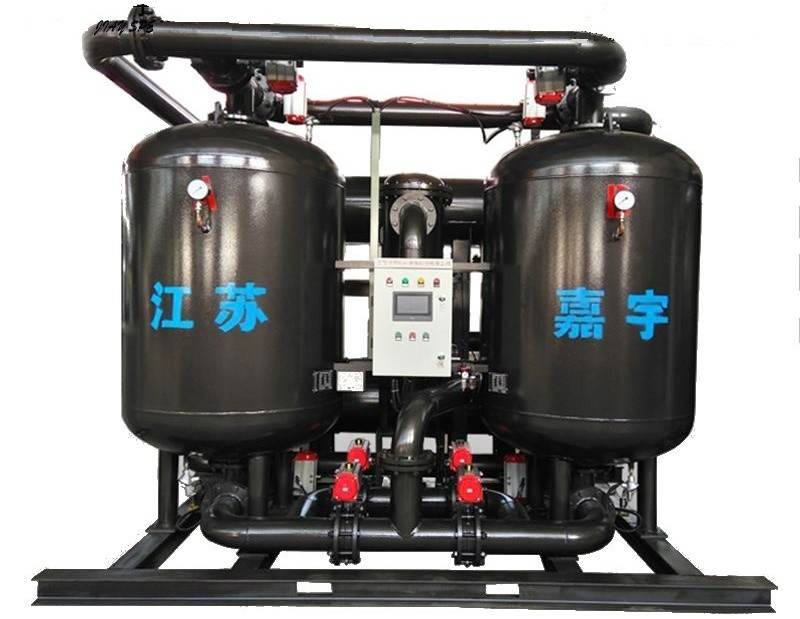 吸干机(吸附式枯燥机)其作业原理是运用吸附剂吸附水分的特性来下降压缩空气中水分的含量,一般来说吸干机出口气的压力露点到达-20℃~-70℃。常见的吸干机吸附剂有活性氧化铝、分子筛等,而吸干机要取得极枯燥压缩空气时(露点低于-60℃一下),分子筛是仅有的挑选。