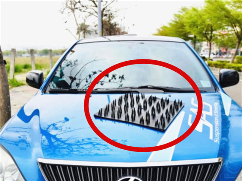 划伤车子也就算了,还有些漂泊猫在车上分泌搞得车身特别的脏,所以这些行为引起了车主们的恶感,便将车子上放一上一个方方正正的尖钉钢板,那些漂泊猫一旦回到车子上会被这些钢板扎伤,久而久之他们就不会再去引擎盖上趴着了。