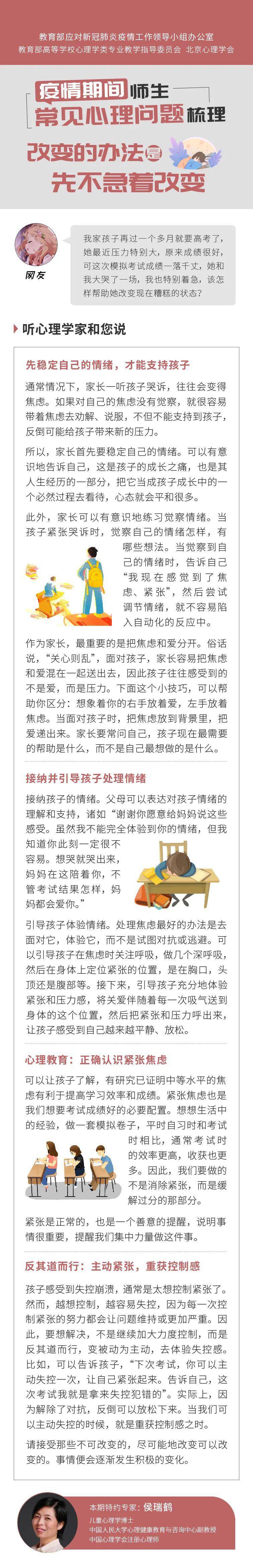 原标题:家长怎么帮高三学生缓解压力?大学生怎样应对焦虑?心思学专家来回答 | 用“心”战“疫”(88)
