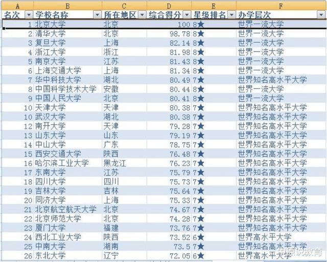 最终咱们再来看一下最近才发布的软科排名,又会给咱们咱们带来哪些意想不到的成果呢?下图列出了软科排名中部分高校的排名状况: